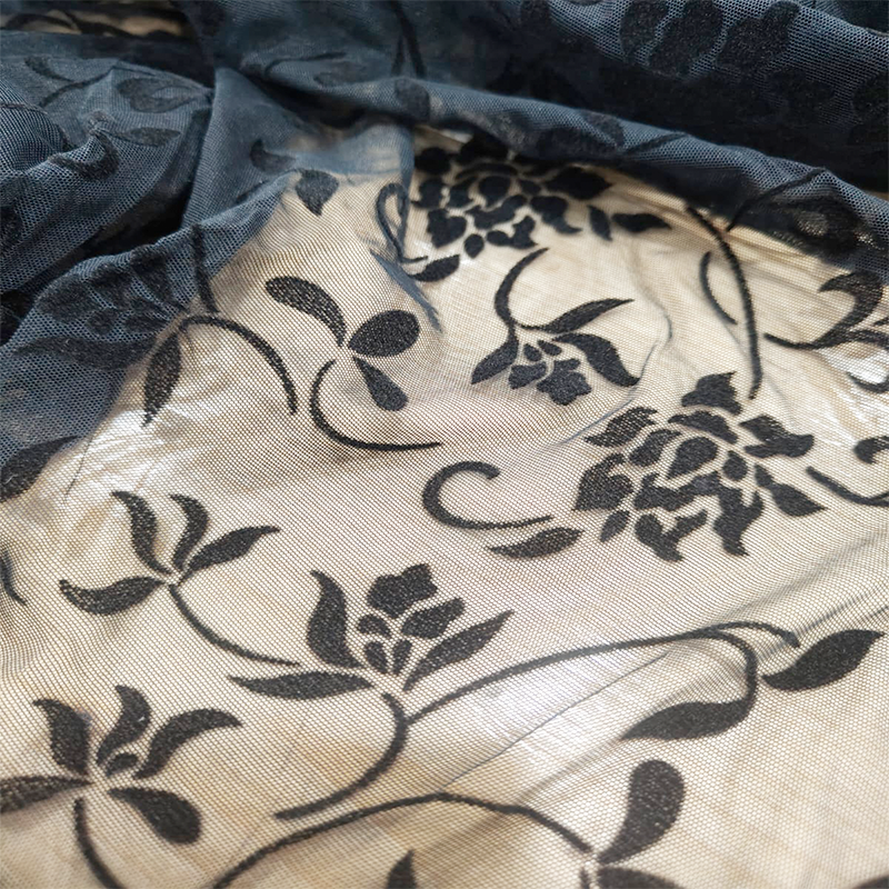Microrete Elastica Floccata Fiori Neri