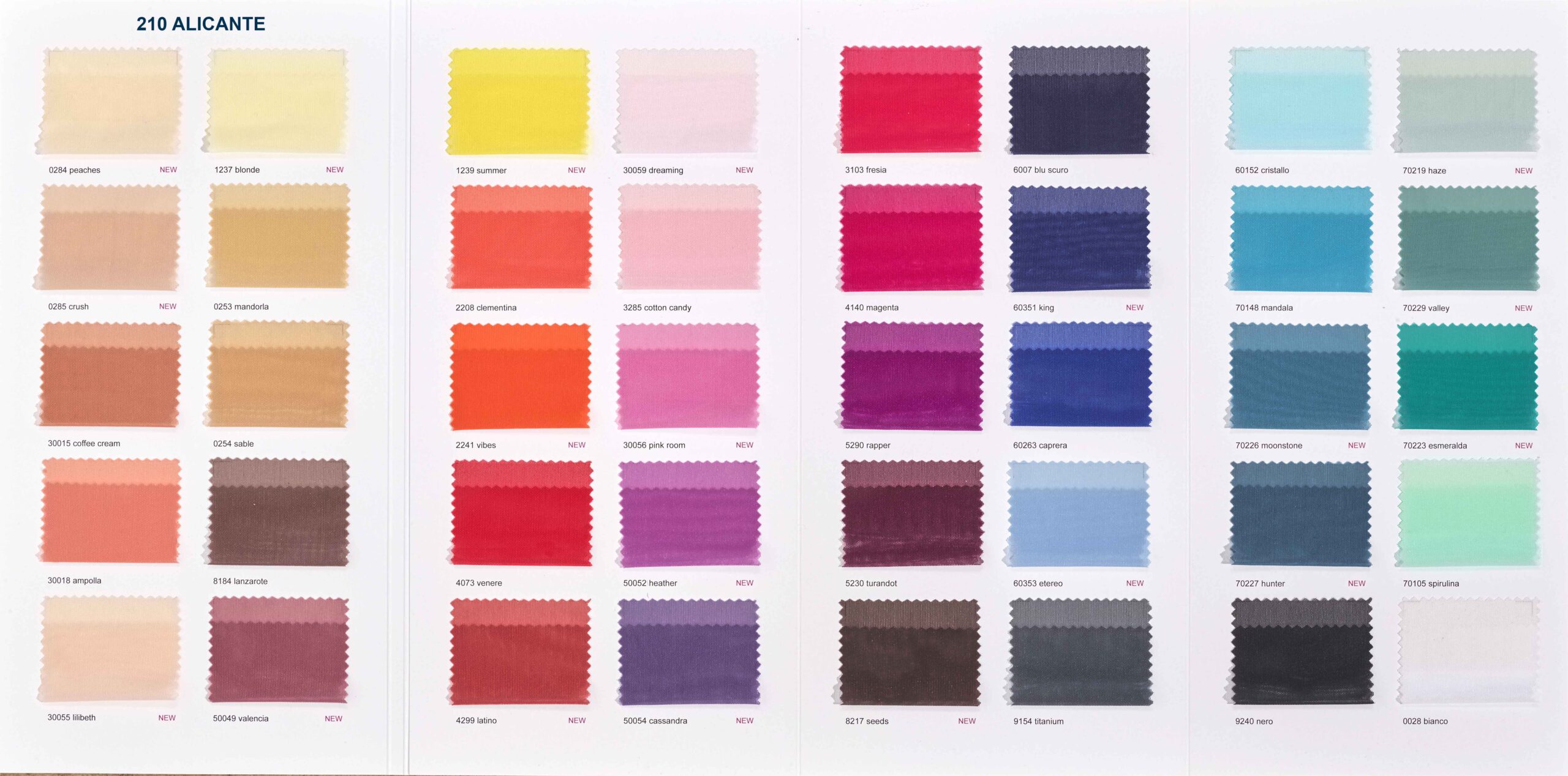 0284 peaches ,1237 blonde ,0285 crush ,0253 mandorla ,30015 cofee cream ,0254 sable ,30018 ampolla ,8184 lanzarote ,30055 lilibeth ,50049 valencia ,1239 summer ,2208 clementina ,2241 vibes ,4073 venere ,42099 latino ,30059 dreaming ,3285 cotton candy ,30056 pink room ,50052 heather ,50054 cassandra ,3103 fresia ,4140 magenta ,5290 rapper ,5230 turandot ,8217 seeds ,6007 blu scuro ,60351 king ,60263 caprera ,60353 etereo ,9154 titanium ,60152 cristallo ,70148 mandala ,70226 moonstone ,70227 hunter ,9240 nero ,70219 haze ,70229 valley ,70223 esmeralda ,70105 spirulina ,0028 bianco |